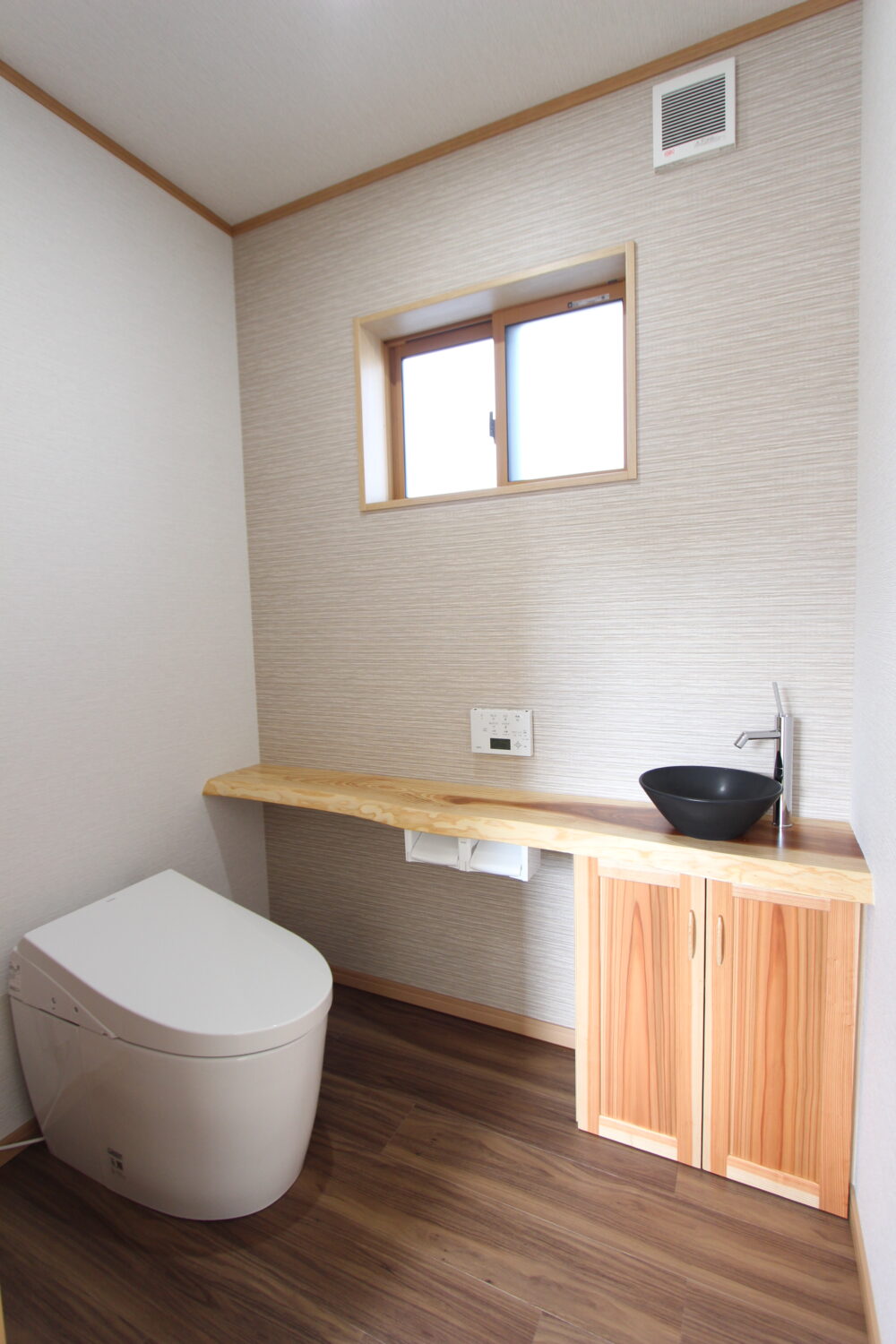 13年間、私たちは理想の家づくりを思い描いてきました。以前暮らしていた築50年ほどの家は断熱材が入っておらず、夏は暑く冬は寒い住まいでした。さらに夫婦の寝室が2階にあり、年齢を重ねるにつれて毎日の階段の上り下りが負担に感じるようになっていました。そこで、階段を使わずに暮らせ、四季を通して快適で安心できる家にしたいと考えるようになりました。片建設さんの家を何度も見学する中で、あたたかみのある無垢材の魅力に惹かれ、建築をお願いすることを決めました。家族一人ひとりの想いを間取りに丁寧に反映していただき、家族全員の願いが形になったことに、深い感慨を覚えています。